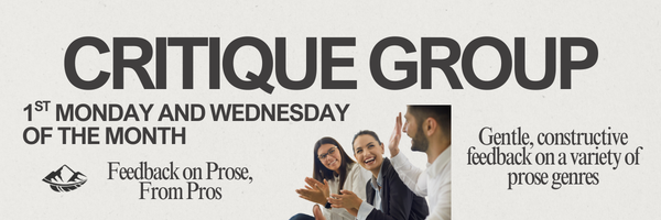 Come and meet other writers for a morning of critique the first Wednesday of each month! We'll break into groups by genre as applicable. Bring 1000-1500 words to read aloud and be prepared to exchange some gentle constructive feedback among your fellow writers. You're welcome to come participate even if you don’t have anything to read yet. This is a virtual meeting hosted on Zoom for Active and Sustaining members.