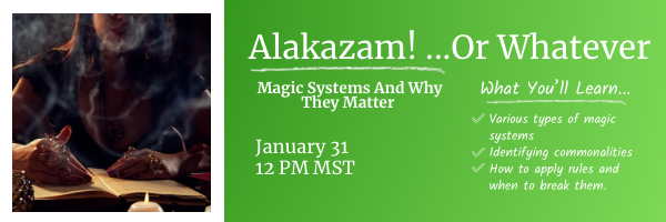 Stories have connected humanity since before we could even speak and the earliest tales often involve magical people, gods, and creatures. When writers set out to build their own worlds, it's important to properly evaluate the magic system. This class will review different types of magic systems, identify commonalities, and discuss how to apply rules and when to break them.